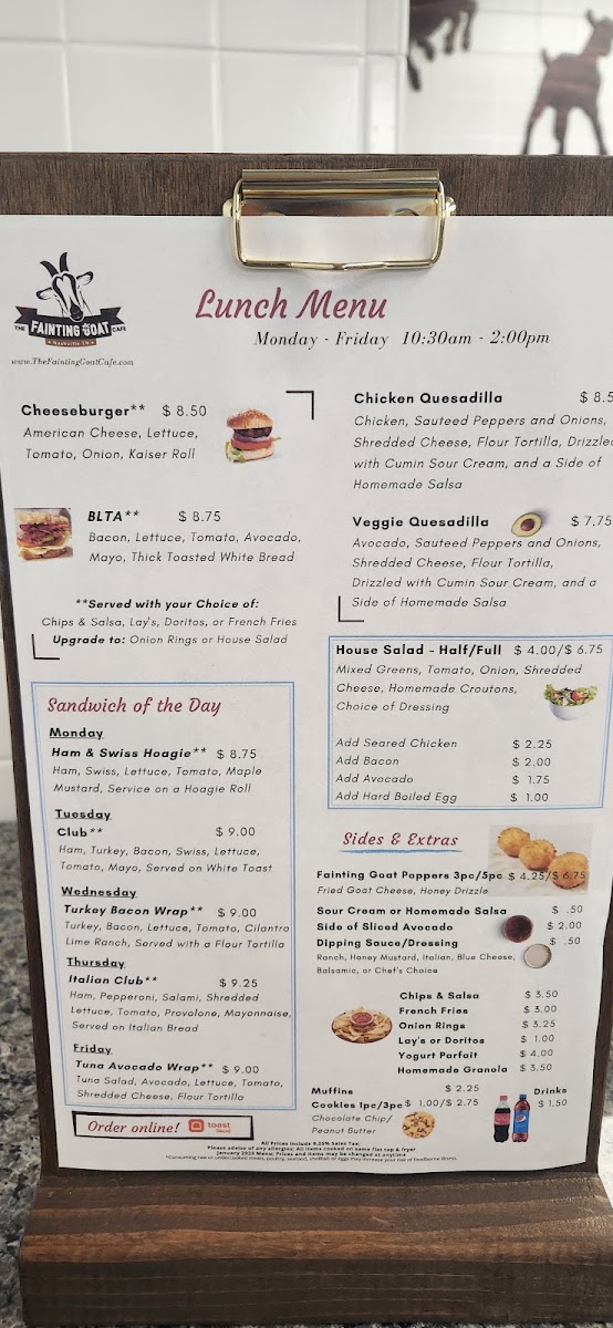 The Fainting Goat Cafe - Nashville, TN Menu